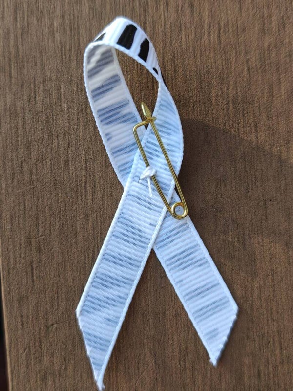 Ribbon zebra stof. Gemaakt door NET-patiënten. 6,5 cm hoog