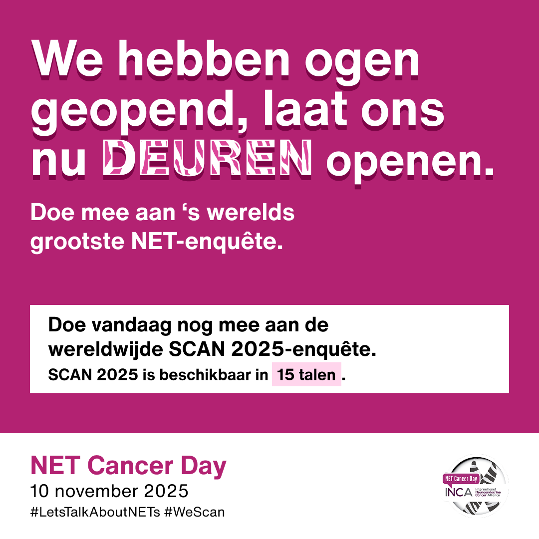 Ook organiseren ze een webinar samen met ENETS voor patiënten over NET en NEC. U kunt u zich gratis voor aanmelden. Let op! Het webinar is in het Engels.