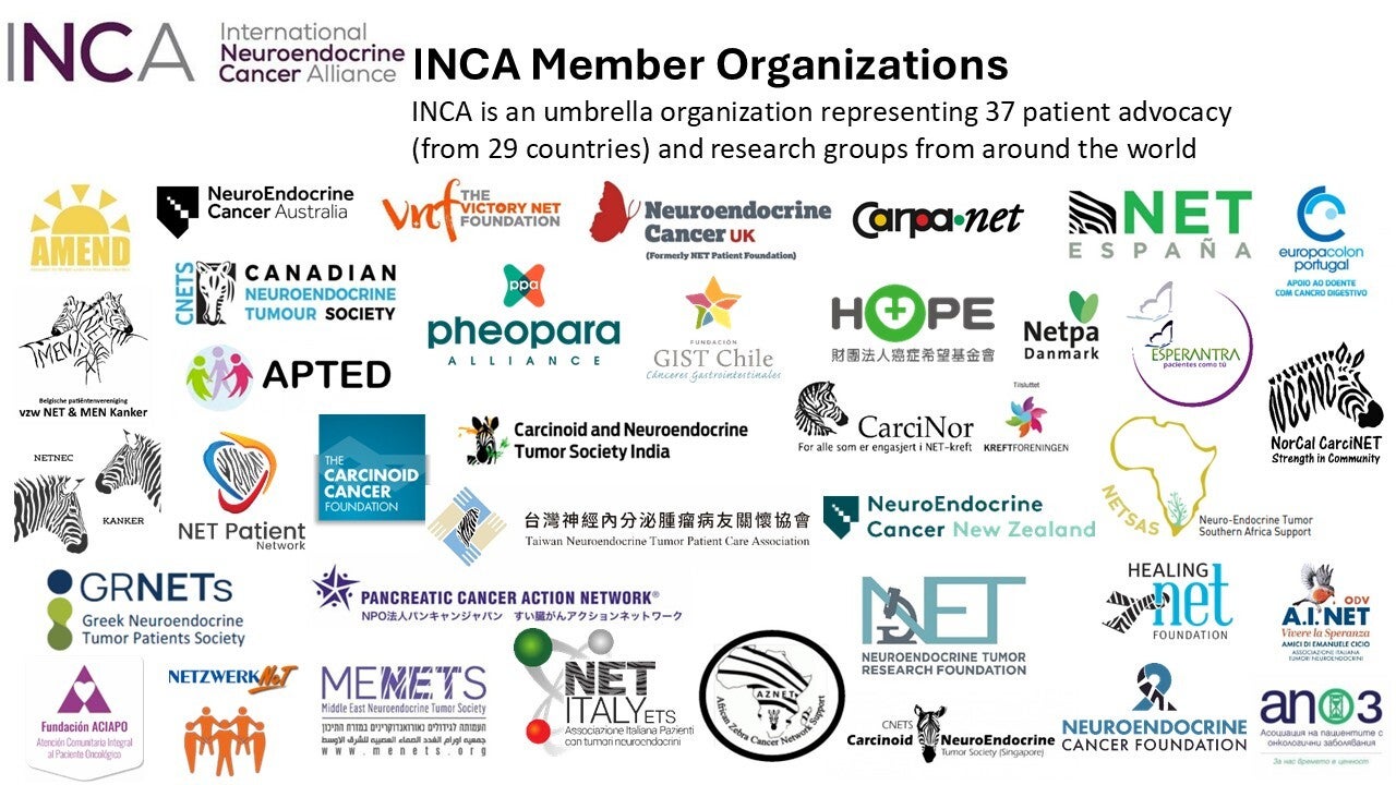 INCA staat voor International Neuroendocrine Cancer Alliance en bestaat uit 37 patiëntenbelangen organisaties voor NET en NEC kanker verspreid over 29 landen. Zij hebben tot doel wereldwijd voor alle NET en NEC kanker patiënten een tijdige diagnose, optimale behandeling, ondersteuning en zorg en uiteindelijk genezing te bewerkstelligen. Dit doen ze door verschillende activiteiten te organiseren die vallen onder diverse thema's, zoals bewustzijn, onderzoek, werken met de specialisten en wetenschappelijk onderbouwde belangenbehartiging.